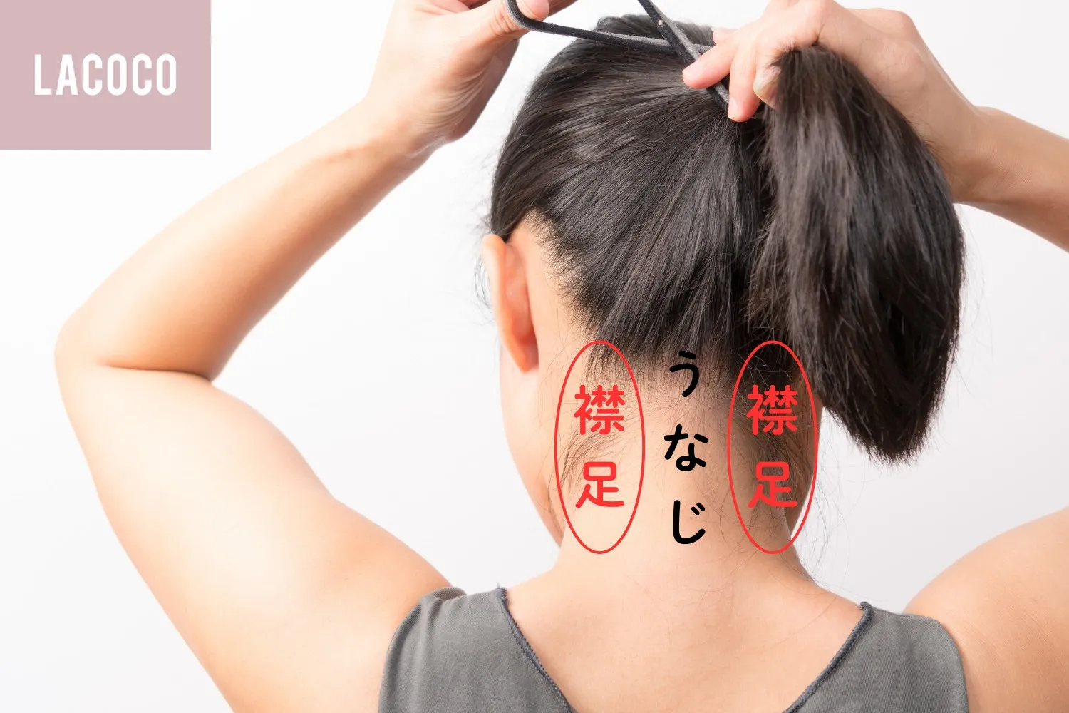 襟足とうなじは、首の後ろ側を指します。一方で襟足は、髪の生え際の左右にわかれている部分です。髪の毛をアップにすると、左右が少しだけ長いのではないでしょうか?