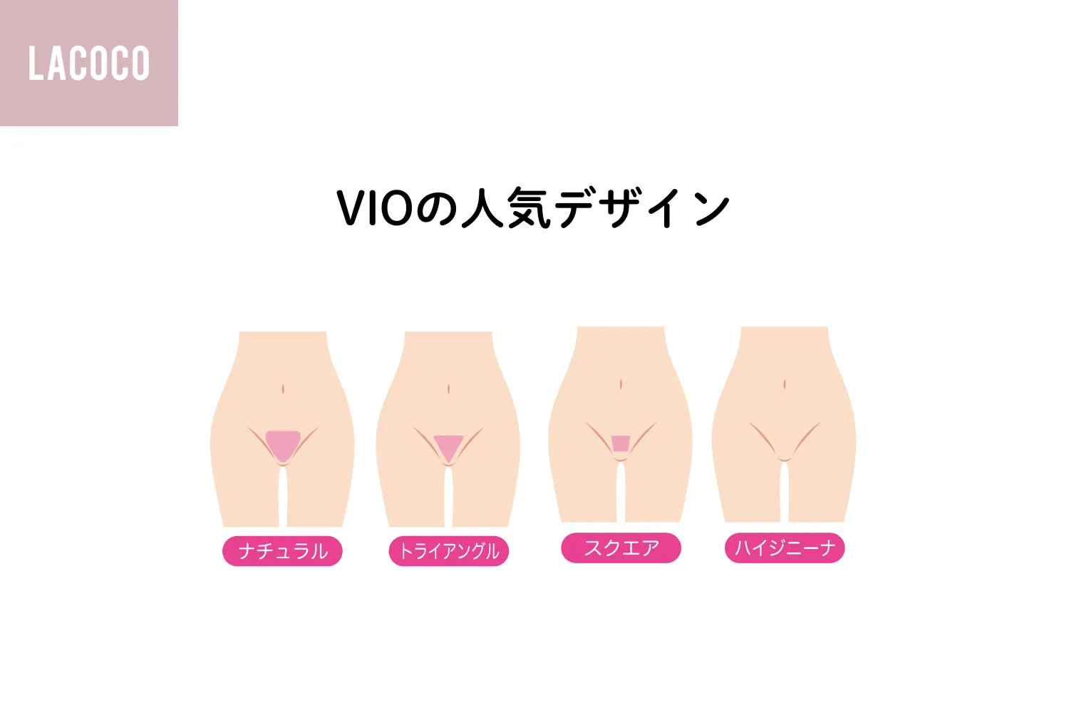 VIOデザインは、見た目の印象を大きく左右するものです。どこまで剃るのかイメージしやすいように、ここでは人気があるVIOのデザインを5つご紹介します。