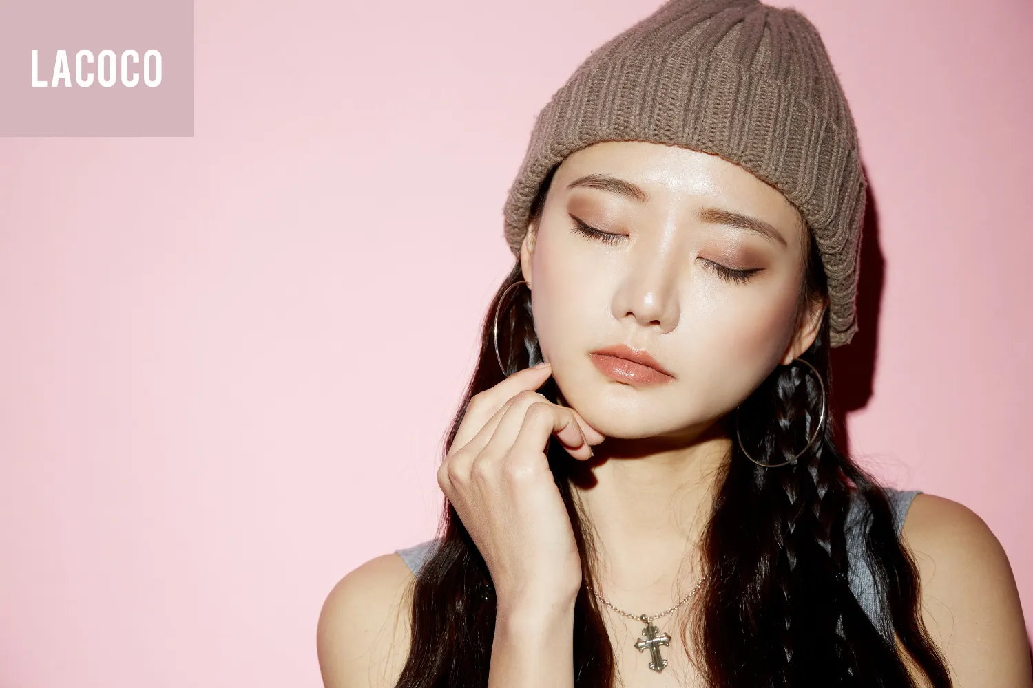 リップはほぼファンデーションと同じくらいの、ベージュ系ヌーディーカラーで、とにかくナチュラルに仕上げます。コンシーラーで唇の血色を抑え、白みが強いベージュのグロスを重ねてもかわいいですよ。